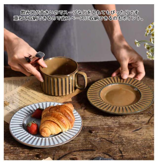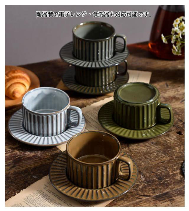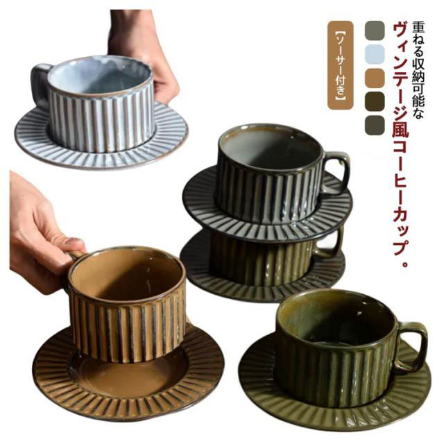 | 重ねる収納可能なヴィンテージ風コーヒーカップ。【ソーサー付き】 陶器製で電子レンジ・食洗器も対応可能です。 ほっと一息つくティータイム、コーヒーや紅茶を入れて。 飲み口が大きいのでスープなどを入れてもぴったりです◎ 重ねて収納できるので省スペースに収納できるのもポイント。 シンプルなのに素敵に見える。使ってみてわかる、飾りすぎない器こそ、毎日の料理を十分に引き立ててくれます。 | |