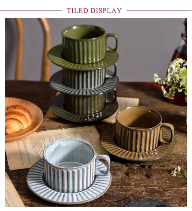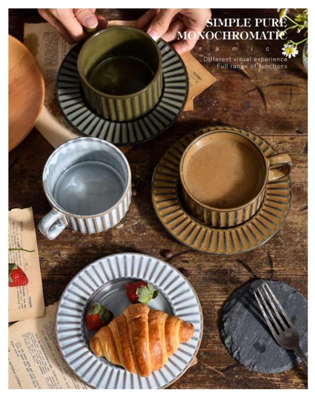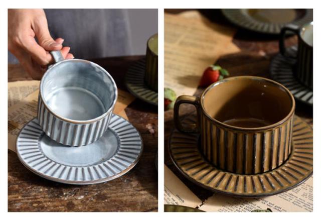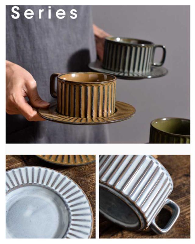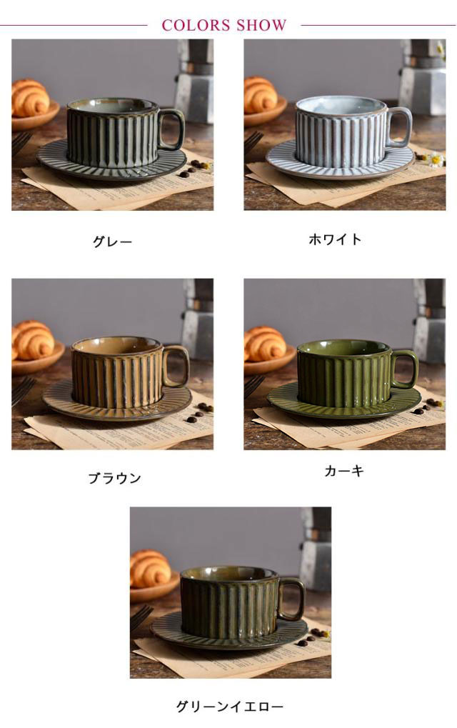 コーヒーカップ ソーサー付き 重ねる 200ml 窯変 陶器 珈琲カップ ティーカップ マグカップ レトロ ヴィンテージ 食器 北欧 おしゃれ 和風 コーヒーカップ 皿付き リム皿 珈琲 紅茶 カフェオレ カップ グレー ホワイト ブラウン カーキ