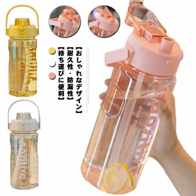 水筒 1100ML 1500ML 2000ML ストロー 大人 子供 ウォーターボトル 直飲み 目盛り付き ストロー付き水筒 大容量 ワンタッチ キッズ 透明 500ml 水筒 プラスチックコップ スポーツボトル 水筒