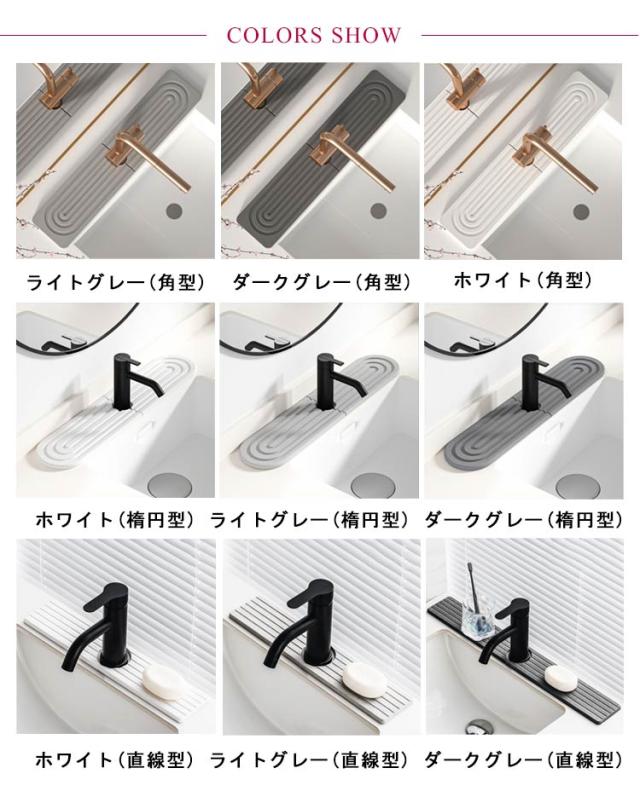 | 水栓元からそのサイドまでカバーしてくれる!蛇口下に設置できる水切りマットです。 水はねや垂れを防止するだけでなく、スポンジの置き場もこなす一石二鳥なアイテム。 汚れたらサッと水洗い!お掃除の手間を減らします♪ シリコン製なので折り曲げがきき、水栓元の径に合わせて調整可能。 5タイプからお選びいただけますので、お家に合ったカラーをお選びください! | |