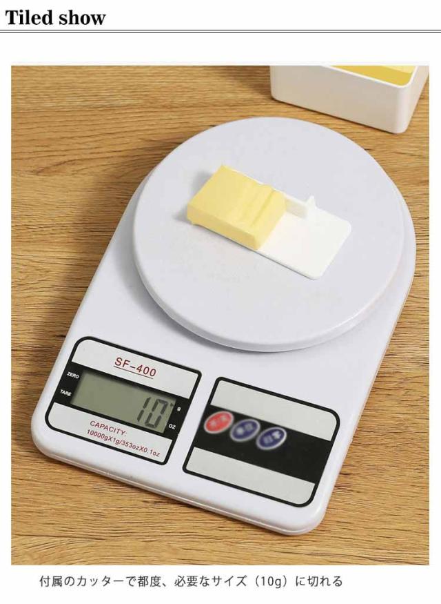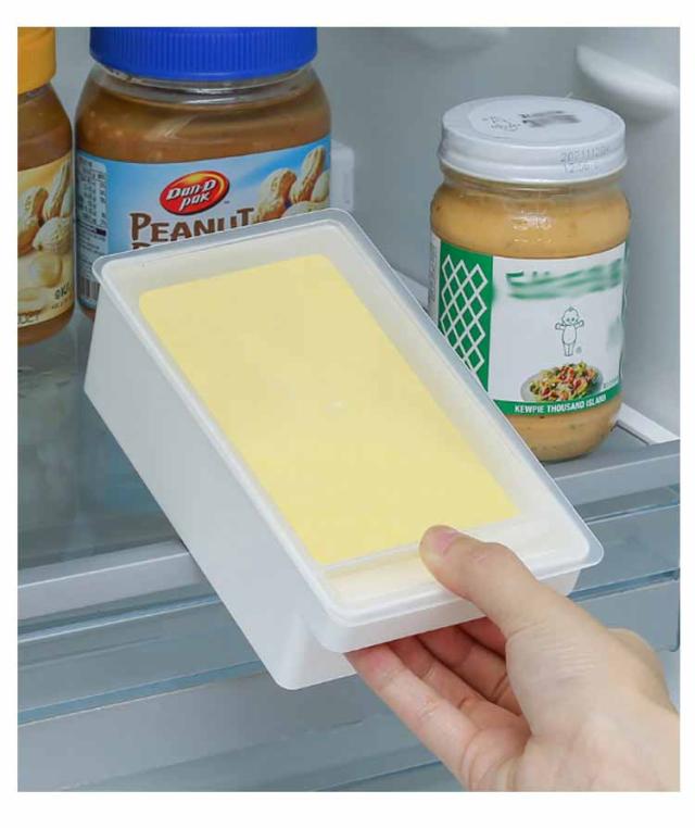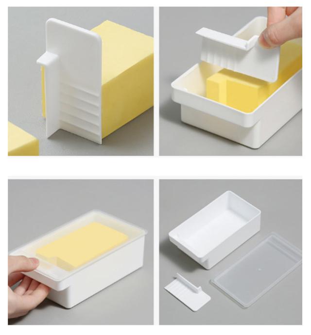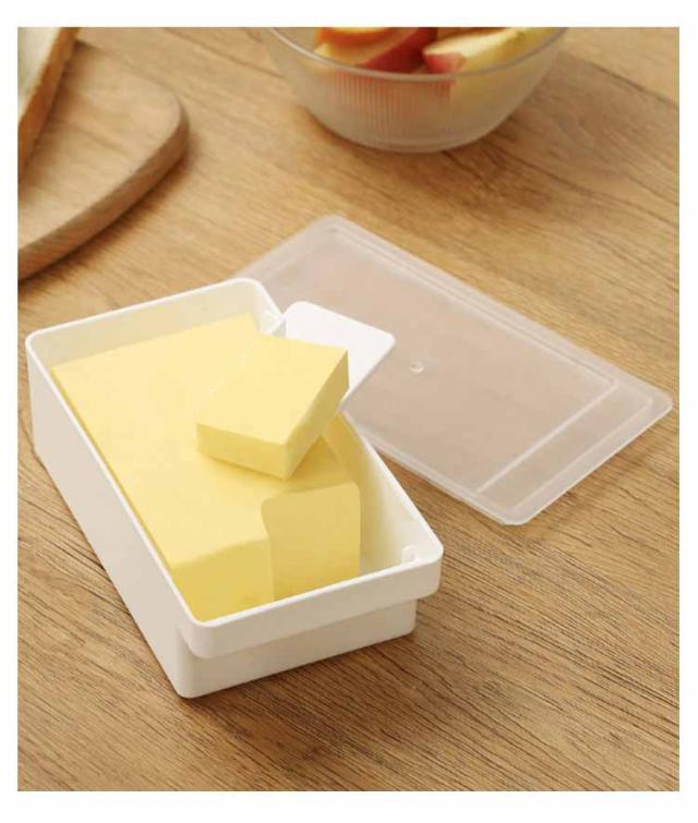 | バターケース 薄く切れるカッター付き カッター付き薄く切れるカッターはフタ裏に收?可能 付属のカッターで都度、必要なサイズ(10g)に切れる | |