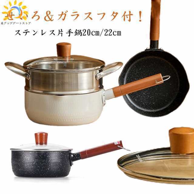 ・せいろ&ガラスフタ付!ステンレス片手鍋20cm/22cm