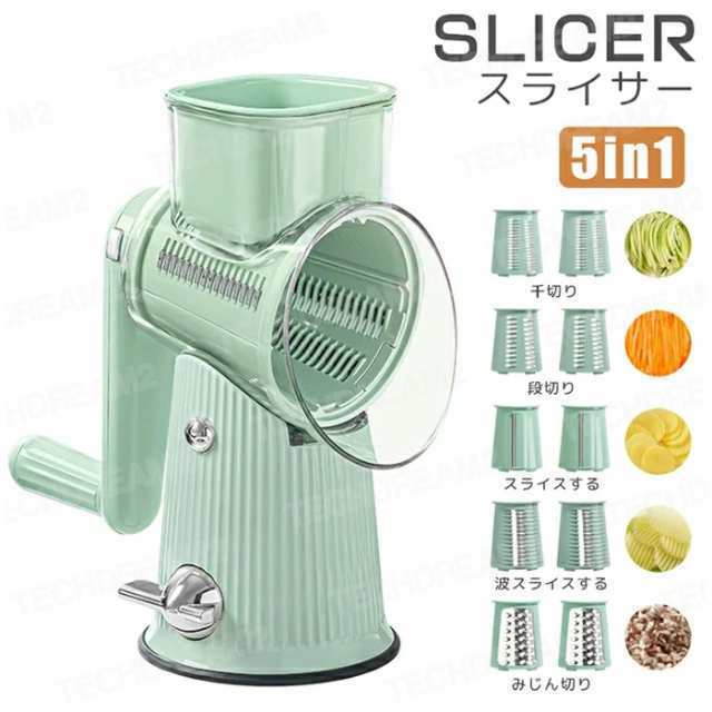 5in1 スライサー セット 電源不要 1台5役 多機能 簡単 フードプロセッサー 回転スライサー すりおろし 千切り 回すだけ キッチン 野菜カット ベジタブル カッター 野菜切り 野菜カッター 野菜 果物 おろし器 時短 調理器具