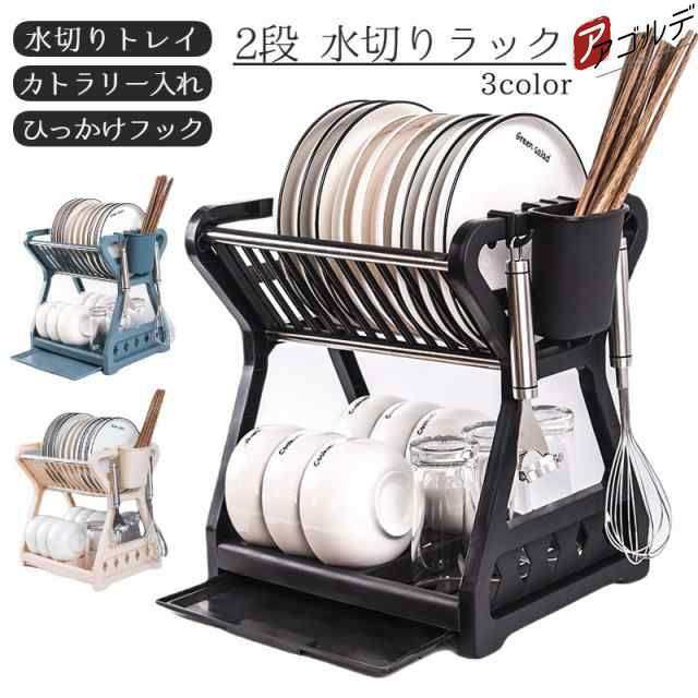 水切りラック 水切りカゴ 2段 大容量 カトラリースタンド 箸立て付 ディッシュラック キッチン用品 水受け トレイ付 食器洗い