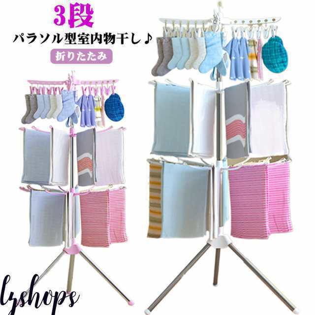 物干しスタンド タオル干し 3段 室内物干し ベビー服 物干しスタンド 洗濯物干し 室内 靴下ハンガー パラソルハンガー 折りたたみ 洗濯