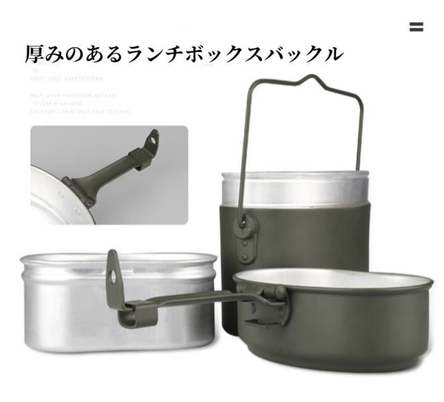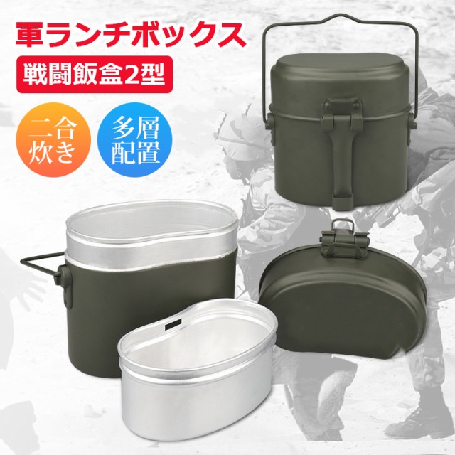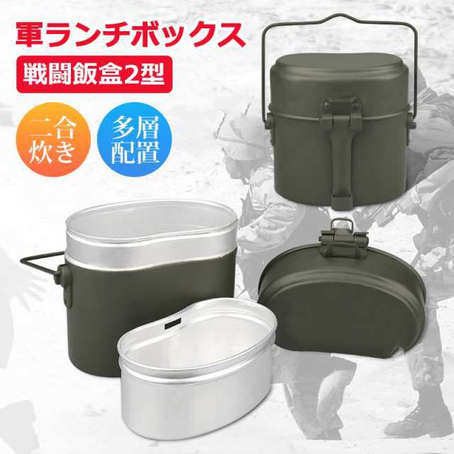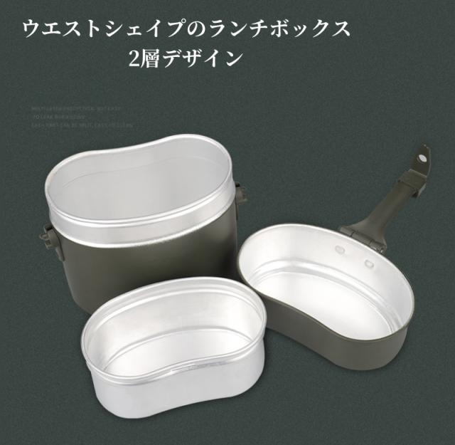 ミリタリーランチボックス ショートハンドル付き 戦闘飯盒2型 同時調理 二合炊き 戦闘飯盒 キャンプ アルミ アウトドア 兵式 軍用 ソロキャンプ