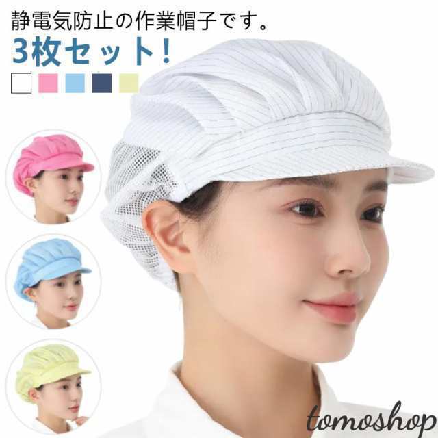 衛生帽子 ワークキャップ 3枚セット つば付き 通気性 洗える 静電気防止 業務用 帽子 衛生キャップ 作業用 ハーフネット キッチン 男女兼用 カフェ 厨房 食品工場 工場 給食 調理用 給食帽子