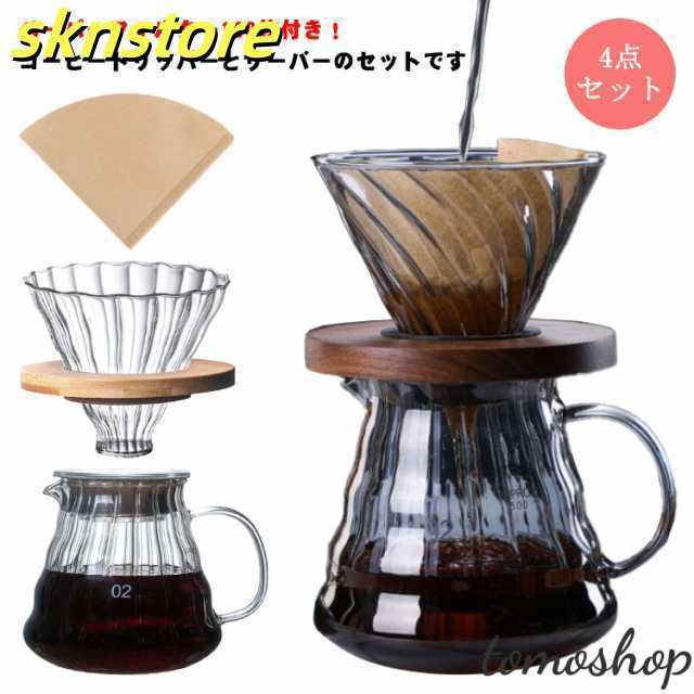 コーヒードリッパー 600ml/350ml 2?4人分 ドリッパー ガラス コーヒーサーバーとサーバーセット ハンドドリップ おしゃれ 珈琲ドリッパー 耐熱ガラス ペーパーフィルター 100枚付き