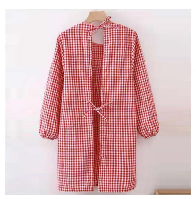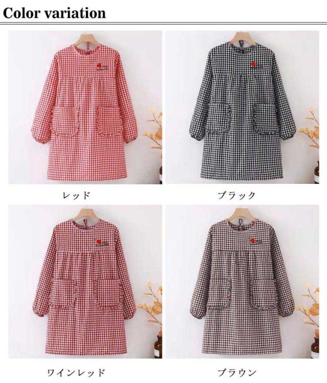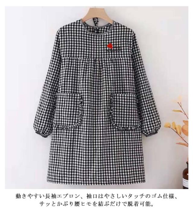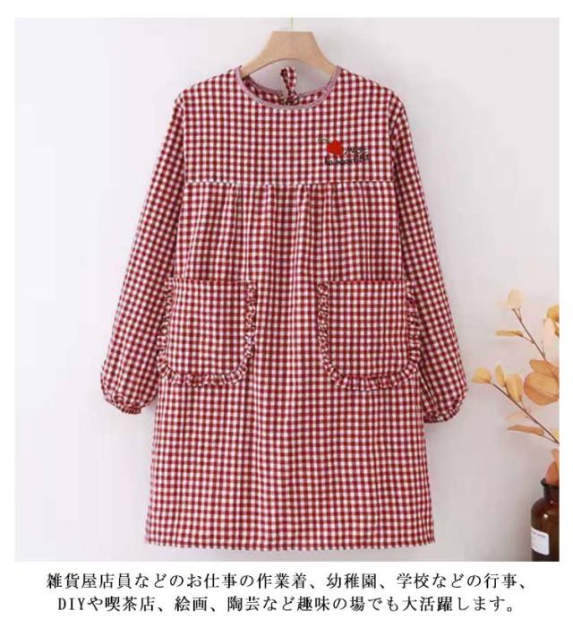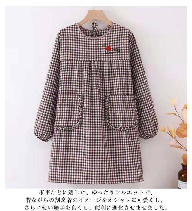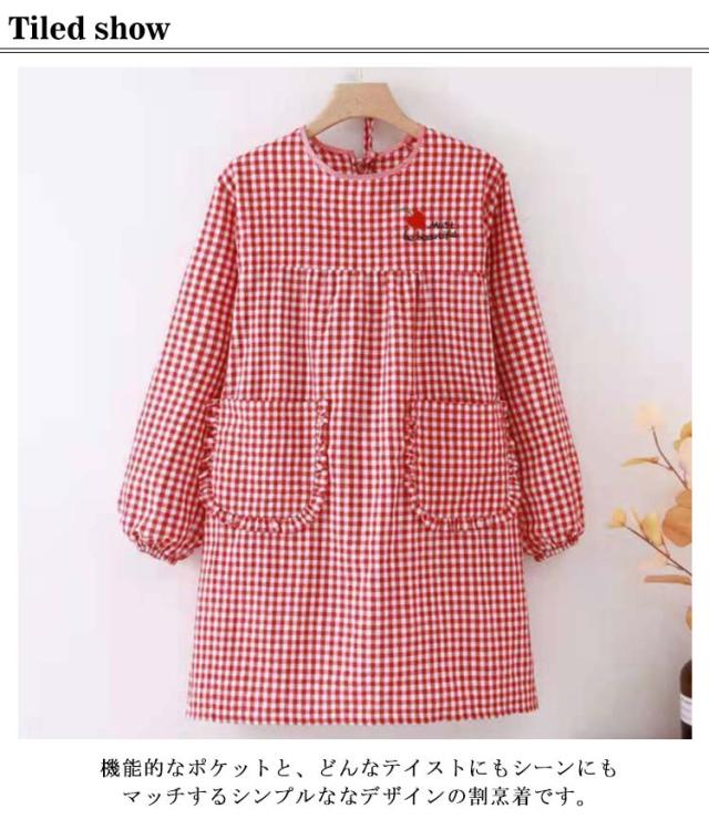 袖付き長袖 割烹着 レディース かっぽうぎ かっぽうぎ 大きいサイズ チェック柄 北欧風 おしゃれ 家事 料理 カフェ エプロン ポケット付き ロング丈 母の日 敬老の日 ギフト プレゼント