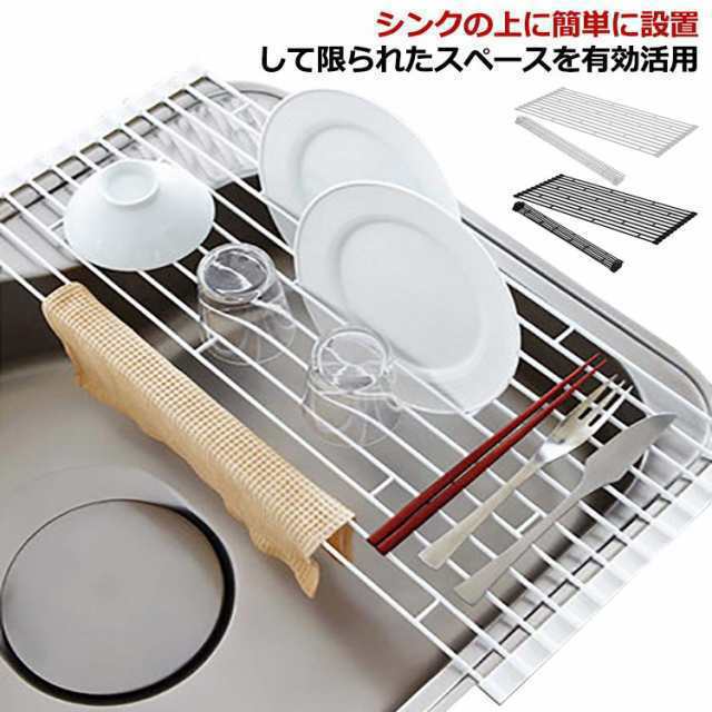| シンクの上に簡単に設置して限られたスペースを有効活用。 シリコーントレーが付いているのでお箸やスプーンなどの小さなものもしっかりと水切りできます。 仕切りはお皿を立てて水切りすることができ便利にお使いいただけます。 使い終わったらくるくる巻いてコンパクトに収納。必要な時だけ広げて使えるのでキッチンが綺麗に片付くのは嬉しいですね。 少しだけ水切りしたい、そんな時は半分に折りたたんで細いラックに。場所を取ることなく水切りできます。 調理台がもう少し広ければいいのに、というお悩みも解決。水切りだけでなく、サッと広げて調理台を拡張させることができます。 サイドのシリコンキャップを外してワイヤー部分を抜き取れば、蛇口を避けて設置することもできます。 薄型でもスチール製!丈夫で安定感があります。お鍋なども安心して乗せることができますよ。 | |