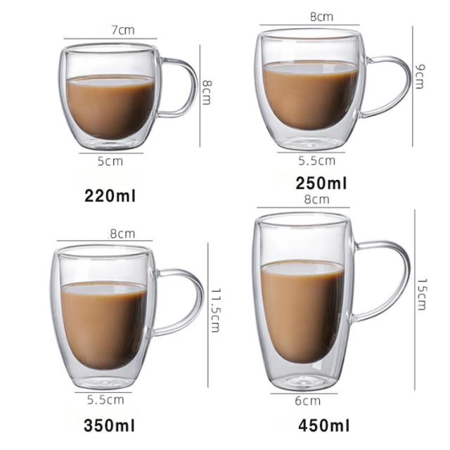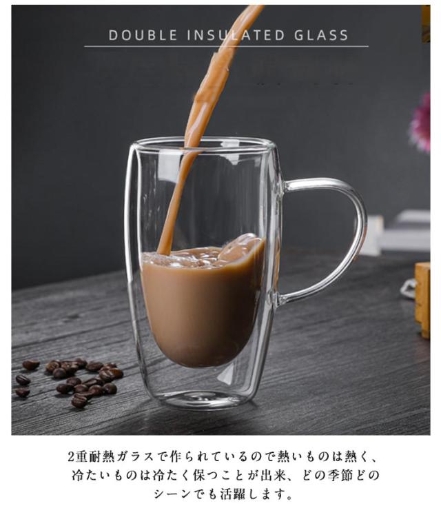 カップ 取っ手付き コーヒーカップ 耐熱ガラス 220ml ダブルウォールグラス ガラスカップ 保冷 二重グラス 保温 保冷 ティーカップ おしゃれ 保温 二重グラス 結露しない 北欧 食器 洗いやすい 二重構造 250ml 350ml