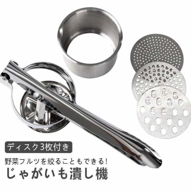 ディスク3枚付き ポテトマッシャー ジャガイモつぶし器 マッシャー 糸こんにゃく ロングポテト ポテトライサー ハンドマッシャー ポテト 搾り器 ポテトチョッパー 手動式 絞り器 手動ジューサー 食品 ディスク3枚付き キッチン用品