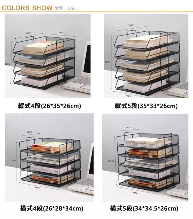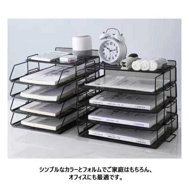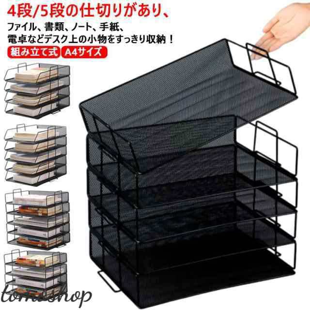 卓上 ファイルラック 書類トレー 4段 5段 書類ラック レターケース 組み立て式 A4サイズ 書類棚 金属メッシュ 書類整理 小物入れ 雑誌/ノート/新聞/フォルダー/書類入れ 収納整理
