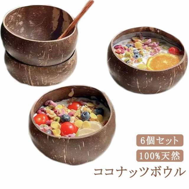 スムージーボウル 環境に優しい ダイニング ディスプレイ ココナッツボウル ライス デザート サラダ キッチン 人気 装飾用 6個セット 食器 おしゃれ デコレーションボウル ご飯茶碗 ココナッツシェル オブジェ 雑貨 6個セット ココナッツウッド