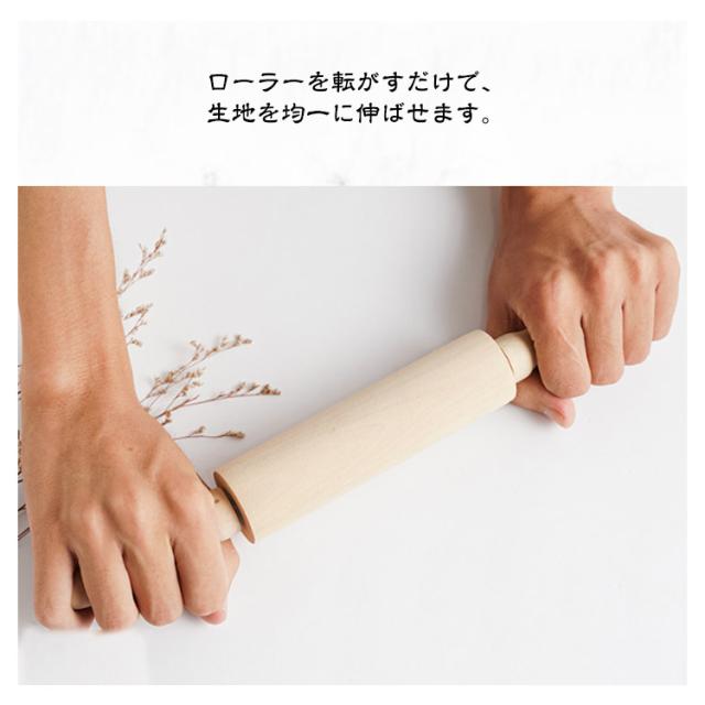 | お菓子作りに欠かせない回転式の めん棒 ローラーを転がすだけで、生地を均一に伸ばせます。 クッキーやパイ生地を伸ばすのに最適! | |