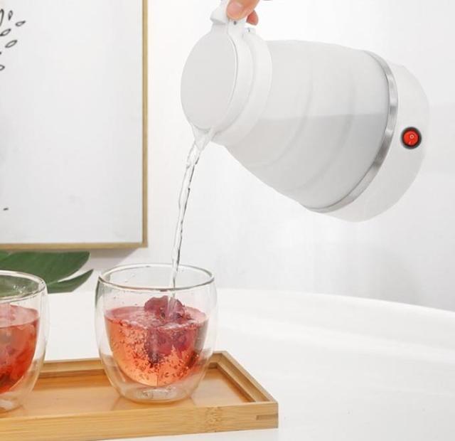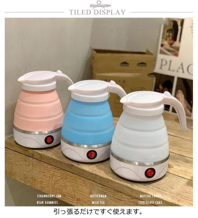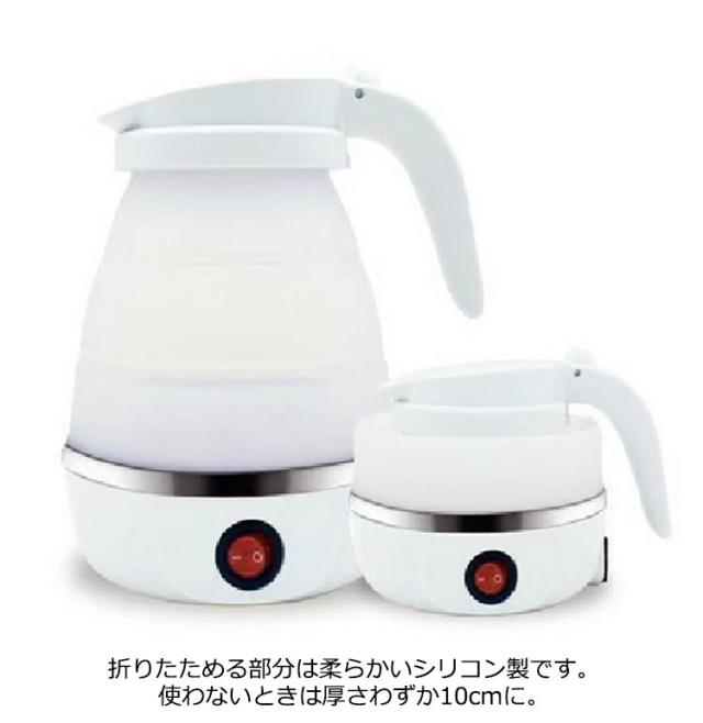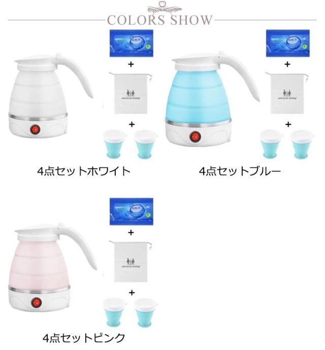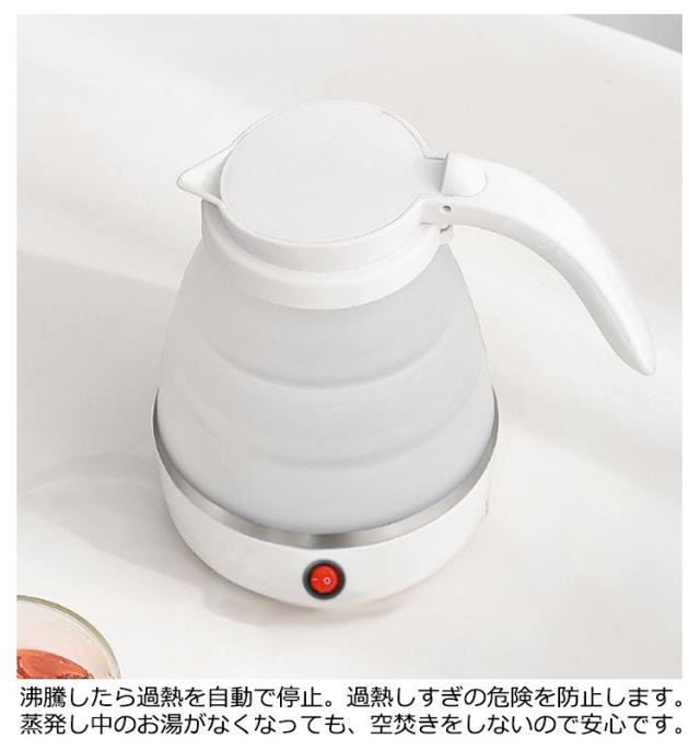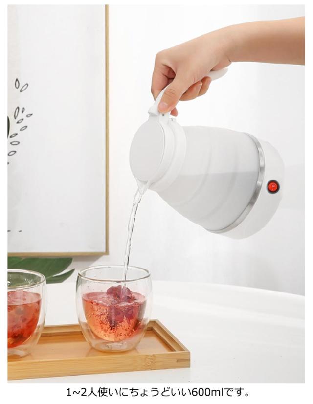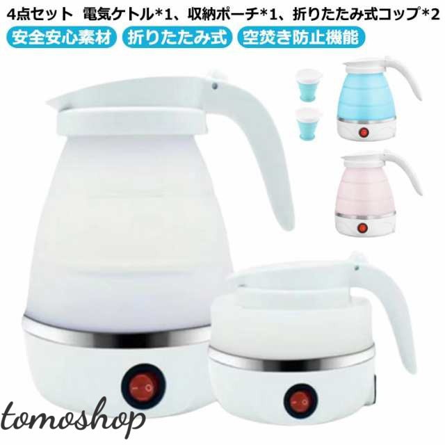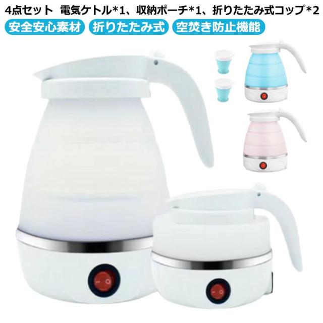 折りたたみケトル 電気ケトル 600ml 4点セット 収納ポーチ付き 2個 コップ付き 持ち運び 湯沸かし器 断熱機能付き 電気ポット キャンプ アウトドア シリコン ケトル トラベルケトル 電気 折りたたみ 旅行 便利グッズ 温度調節 自動 おしゃれ 保温 車中泊 一人暮らし ケトル