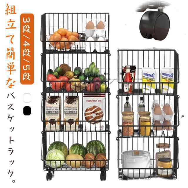 バスケットワゴン 3段/4段/5段 多機能 キッチンワゴン スチール 野菜棚 果物 収納ワゴン キャスター付き バスケット ワゴン ランドリーワゴン 棚 マルチワゴン かご キッチン用品 組立簡単 留め金式 キッチンラック 積み重ね