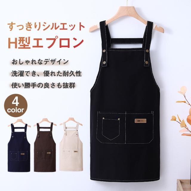 エプロン H型 おしゃれ 保育士 シンプル 無地 学生 かわいい ポケット 細身 普段の家事に 保育士 調理実習 ガーデニングなど 防水 防汚