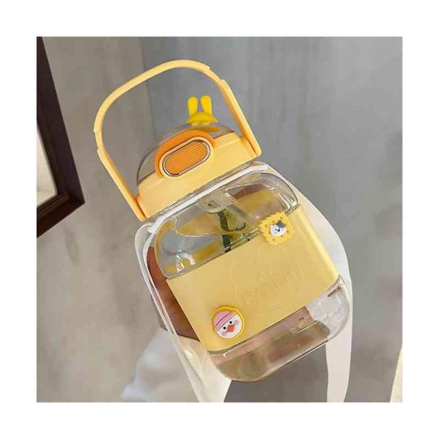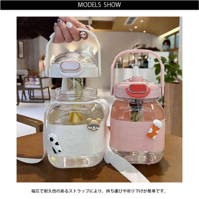 大容量 1400ml ストラップ付き 水筒 ストロー ボトル ウォーターボトル 直飲み 子供 大人兼用 キッズ 子ども こども ワンタッチ かわいい 首掛け ロック付き 持ち運び 軽い 漏れない スポーツボトル ドリンクボトル 通学 通勤 自転車 アウトドア