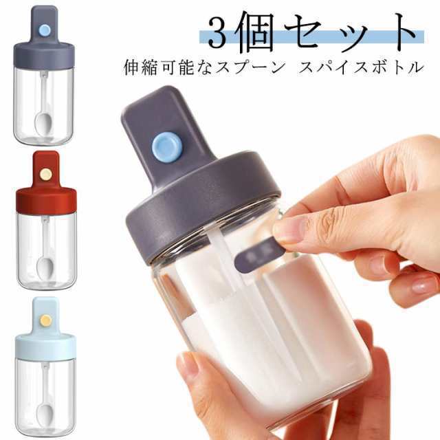 砂糖入れ おしゃれ 伸縮可能なスプーン 耐熱ガラス 香辛料瓶 調味料入れ 塩入れ 3個セット スプーン付き 調味料入れ 砂糖ボトル 糖 香料 調味料容器 調味料ケース 収納 保存