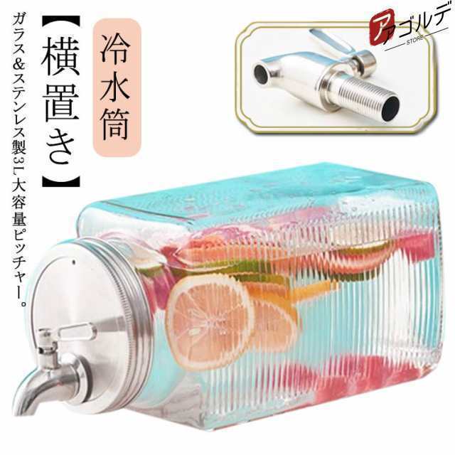 蛇口付き 広口 ジャグ ガラス 冷水筒 横置き 3L 大容量 洗いやすい 麦茶ポット 横置き ピッチャー 冷蔵庫 冷水ポット お茶ポット 水出し