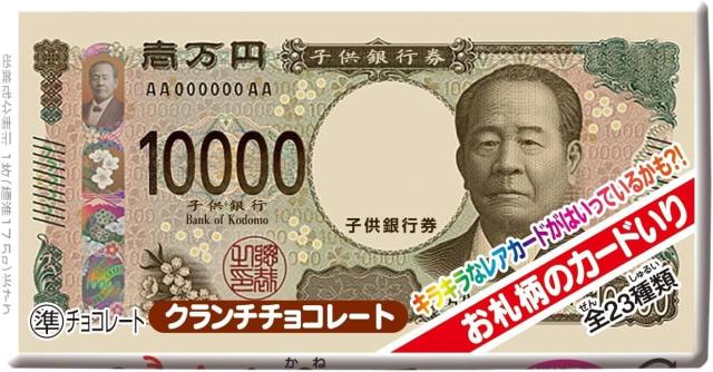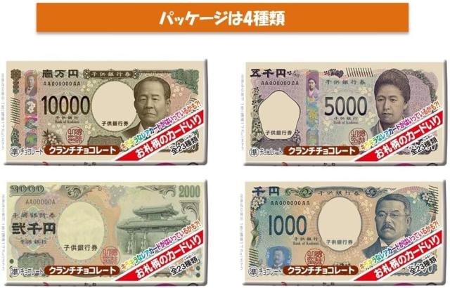 ・ほどよい厚みと大きさの、新札柄のパッケージが目立つクランチチョコレート
