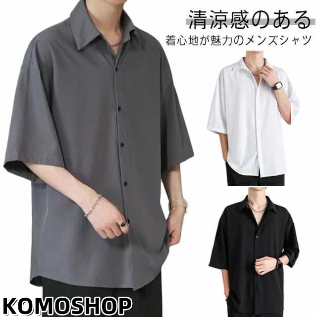 シャツ 半袖シャツ シワにならない 半袖シャツ 涼しい メンズ オーバーサイズ 接触冷感 ドルマン アイスシルクシャツ ビッグシルエット オーバーサイズ 半袖シャツ ロングシャツ ビッグシャツ 無地 とろみ