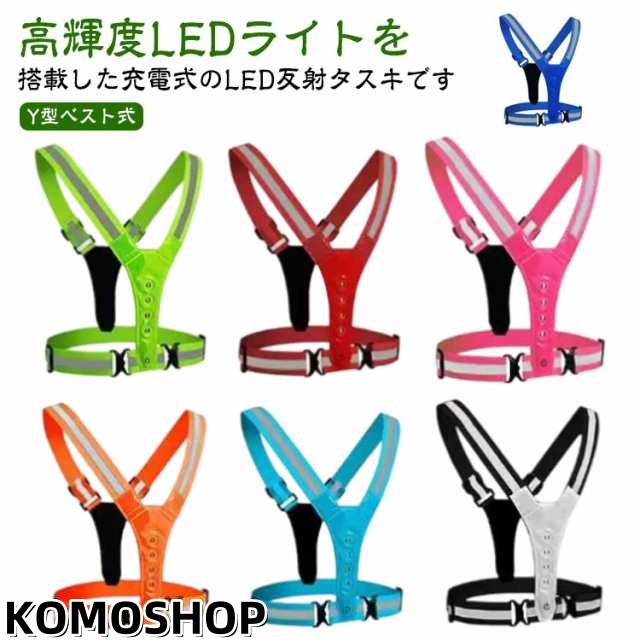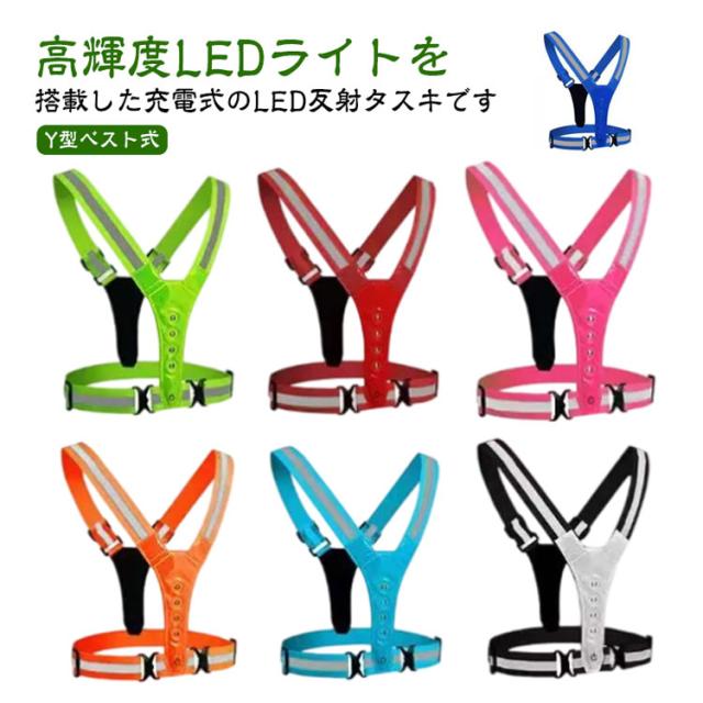 光る ベスト式 夜間 反射 充電式 反射テープ 反射 全8色 ライト ウォーキング 全8色 反射たすき 反射タスキ LED 高輝度 サイクリング USB ランニング 警備 Y型 明るい 事故防止 散歩 安全 通勤 通学 防犯 車 交通整備