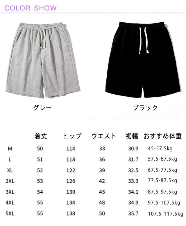 | M-5XL!部屋着&運動着に!春夏のカジュアルスタイルにうってつけのスウェット素材のハーフパンツの登場です。 肌触りの良いやわらかな履き心地♪ 両サイドに便利なポケット付き! ゆったりとしたシルエットで更にリラックスな履き心地。 デイリーユースだけではなく、トレーニングウェアやルームウェアとして様々なシーンで活躍してくれる。 | |