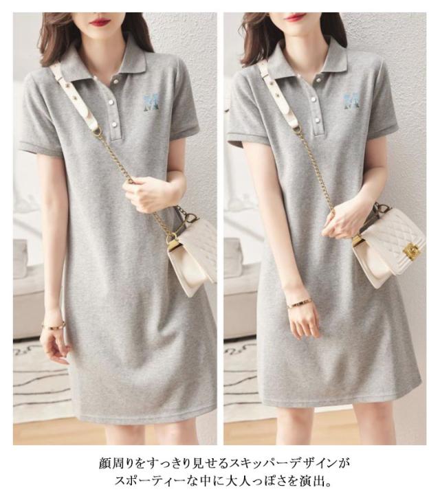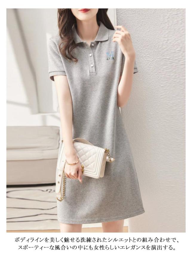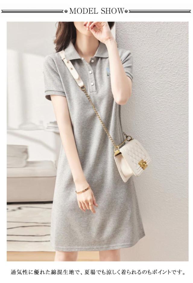 レディース ワンピース スポーツチュニック ゴルフワンピース 大きいサイズ 通気 おしゃれ ロングポロシャツ カジュアル 細身 膝丈 半袖 ポロワンピース 吸汗 夏 秋 涼しい ポロ襟 おしゃれ