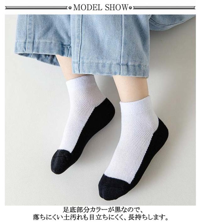 | 10足組!汚れが目立ちにくい!足底ブラック仕様 足底部分カラーが黒なので、落ちにくい土汚れも目立ちにくく、長持ちします。 足首部分はサポートタイプでずれにくく快適。 男女問わず、様々なスポーツ、部活、スクールにもおすすめのソックスです。 | |