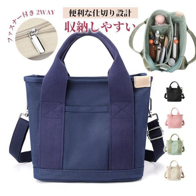 トートバッグ ショルダー付き ショルダー 両用 キャンバス 帆布 レディース ファスナー付き ポケット多い 肩掛け ミニトート 仕切り設計 シンプル
