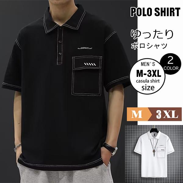 在庫処分 ポロシャツ 半袖 メンズ 襟付き ゴルフポロシャツ スポーツ 刺繍 英語文字 目立つ 白線 ステッチ入れ 薄手 無地 ゆったり 大きいサイズ 人気 夏服