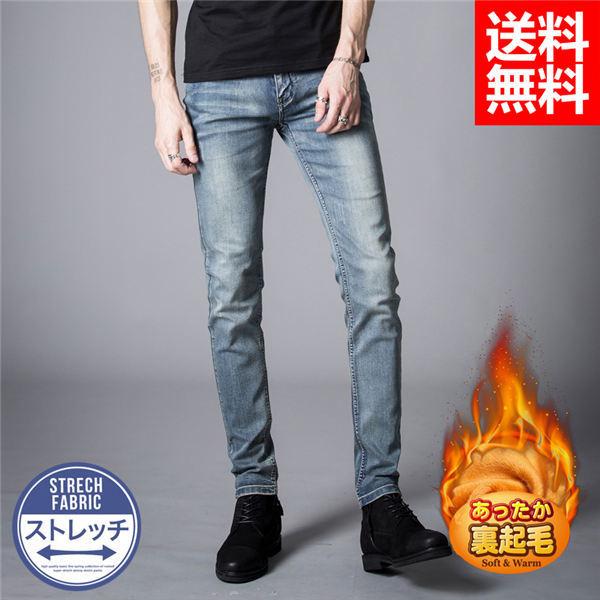 スキニーパンツ メンズ 暖ズボン デニムパンツ ジーパン ジーンズ 裏起毛パンツ ネイビー 色むら 厚手 暖かい 美脚 小尻 秋冬 送料無料