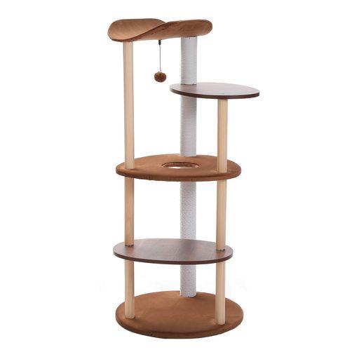 PETEPELA(ぺテぺラ) キャットタワー スリム 木製 木目調 ワタ製爪研ぎ 猫タワー おしゃれ シンプル 人気 運動不足解消 多頭飼い 組立簡単 インテリア - 高さ124.5CM 茶色