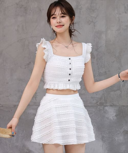 レースフリルが今っぽいガーリーな2点セット水着