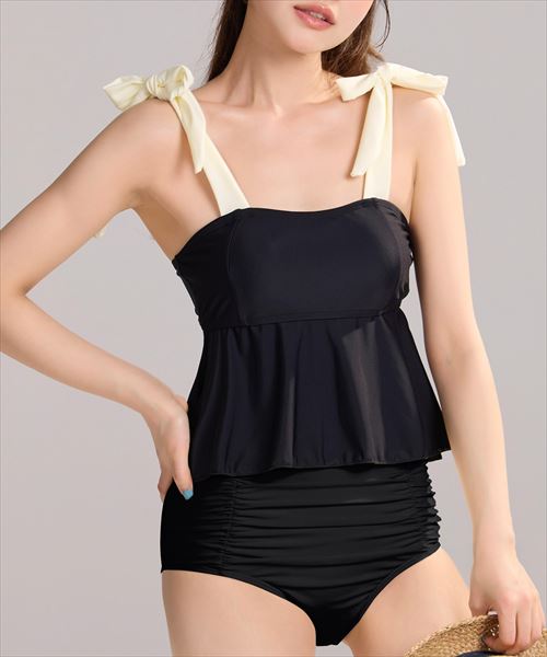 レディース水着 肩リボンペプラムシルエットビキニ 上下2点セット [大きいサイズ有]