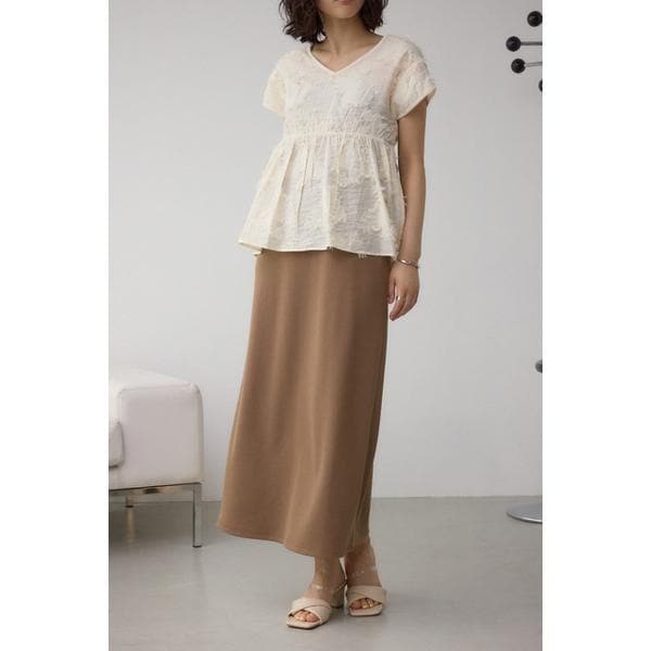 ■ビスチェレイヤードキャミワンピース■ポイントフリンジがアクセントになったジャガード総柄生地のトップスと、柔らかくもちもちした質感の細ピッチリブを使用したワンピースのビスチェレイヤードデザイン。■ディティールトップスの立体的なジャガード柄とフリンジのディティールが、シンプルながらも個性的な印象を与えます。ワンピース部分は、程よい厚みがあり、着心地も抜群。一枚でスタイリングが完成する、こだわりのあるデザインが魅力的なアイテムです。■スタイリング別々に着ても、レイヤードスタイルとして合わせても楽しめる、柔軟なデザイン。シーンや気分に合わせて、自由にアレンジできる一枚です。■生地フリンジが特徴のジャガード総柄生地を使用したトップスと、もっちりとしたやや厚手で細ピッチのリブを使用したワンピースです。トップスの生地はデリケートな素材なのでお取扱には注意してください。透け感:BRNのトップスはあり裏 地:なし伸縮性:ワンピースはあり光沢感:なし[注意事項]※画像の商品はサンプルです。実際の商品と仕様、加工が若干異なる場合があります。※画像の商品は光の照射や角度、お使いのモニター環境により、実物と色味が異なる場合がございます。※着用、お取り扱いの際は、アテンションタグをご確認ください。