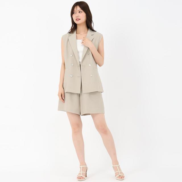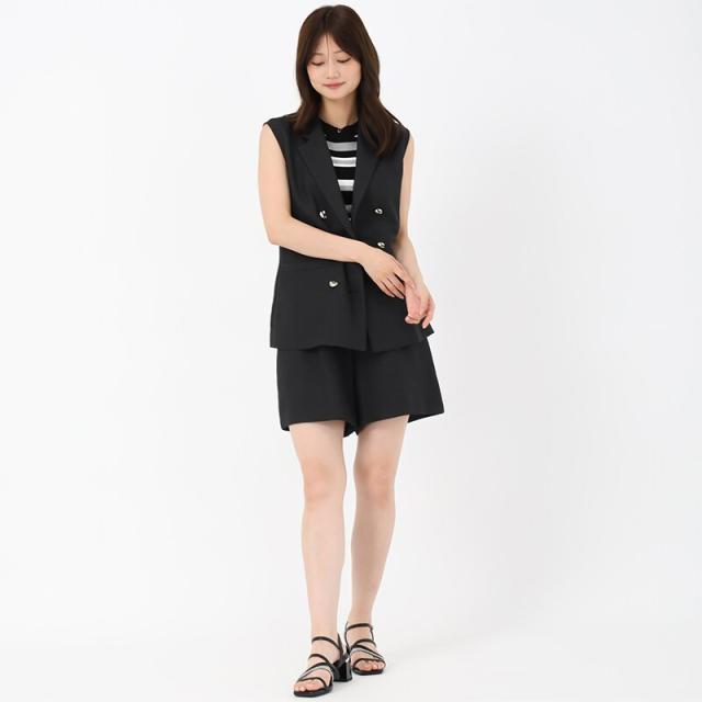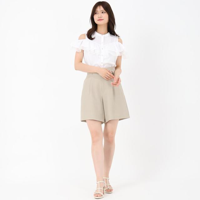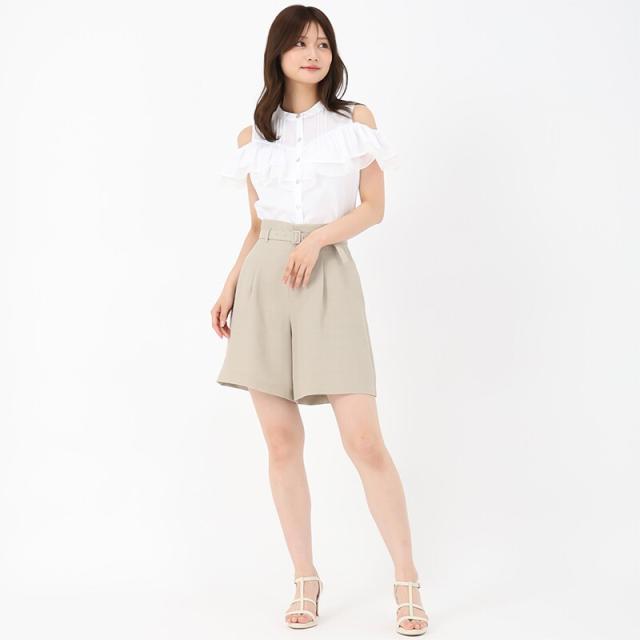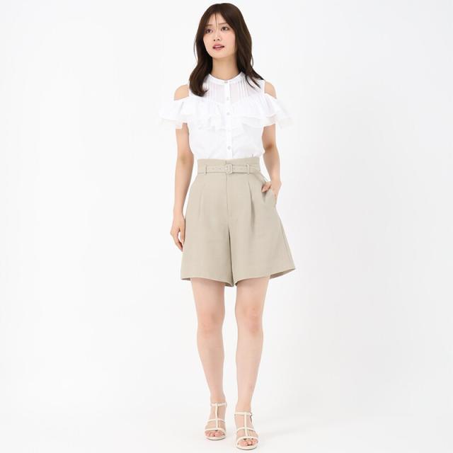 麻調メッシュ素材で爽やかな印象を演出するショートパンツ。程よくハリのある生地感とタックをくわえた立体感のあるシルエットがポイント。共布ベルトのウエストマークも上品なアクセントをプラスします。同素材のジレとセットアップで着用するのがおすすめです。■fabric透け感[無し]裏地[無し]伸縮性[無し]生地の厚さ[普通]ウエストゴム[有り]ファスナー[有り]ポケット[有り]