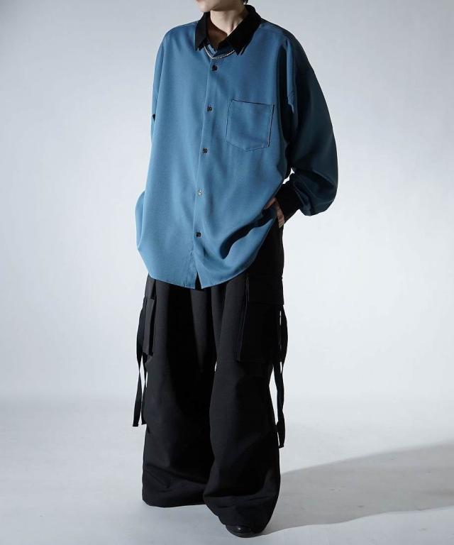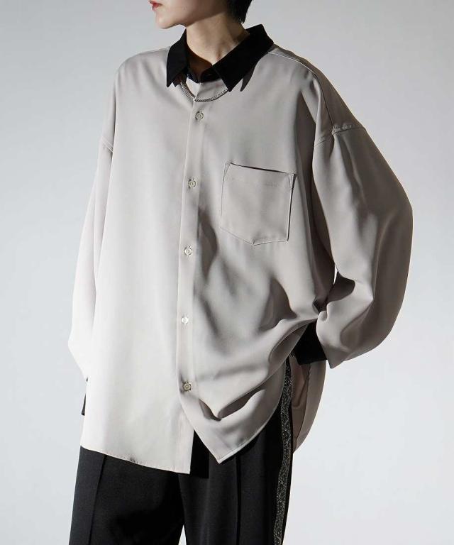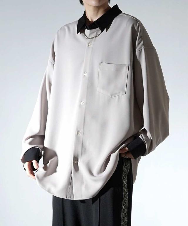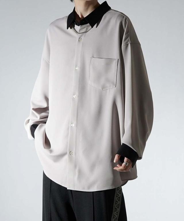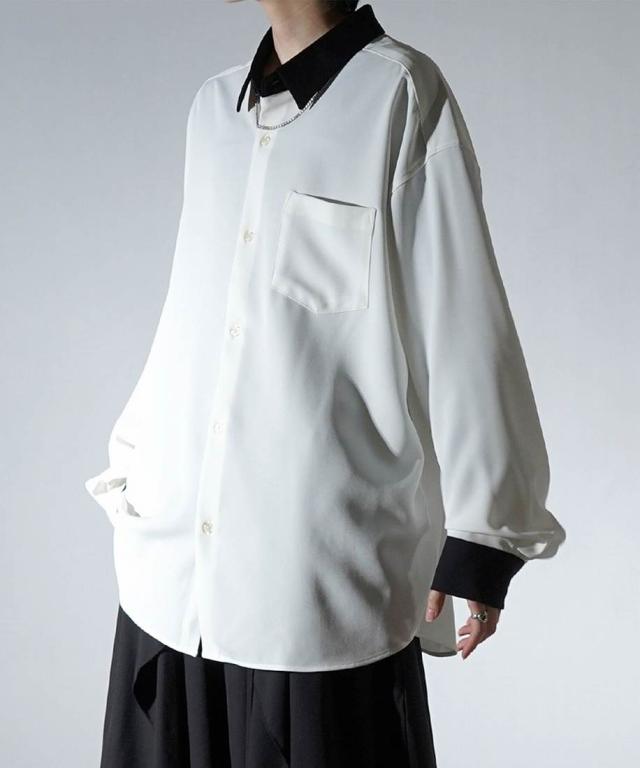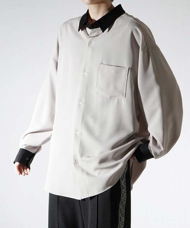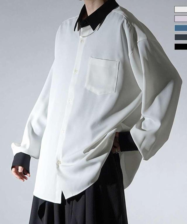 コンファーム(Confirm)/Confirm アシンメトリー 襟配色クレリック ドレープとろみ ビッグシルエット長袖シャツ