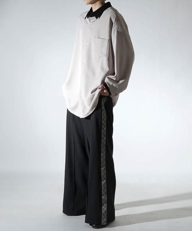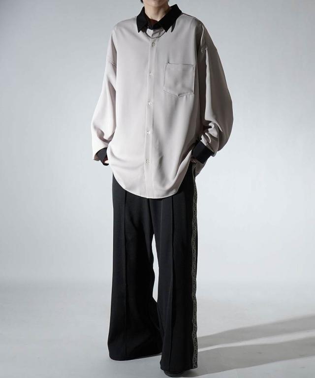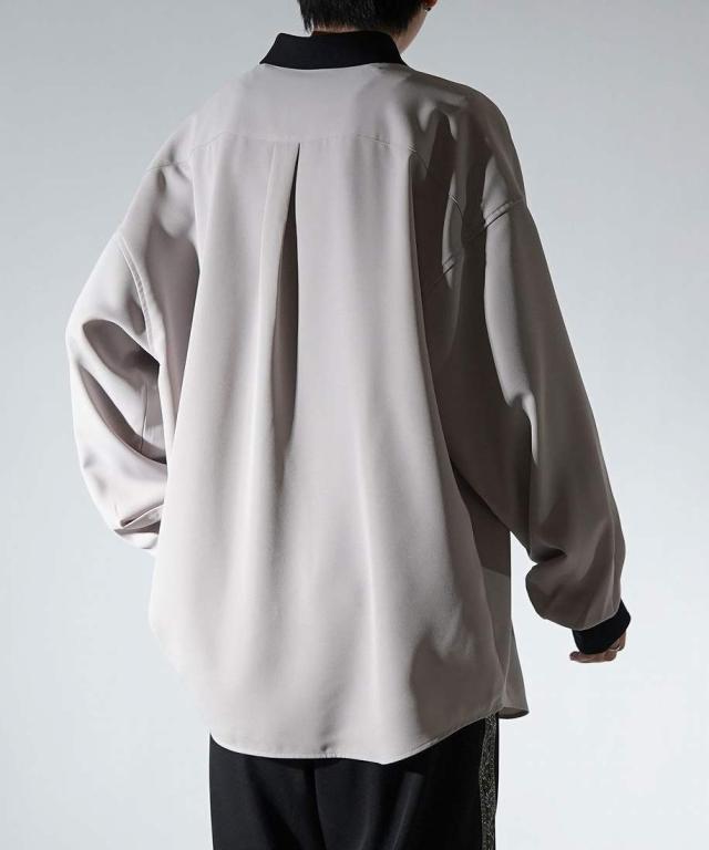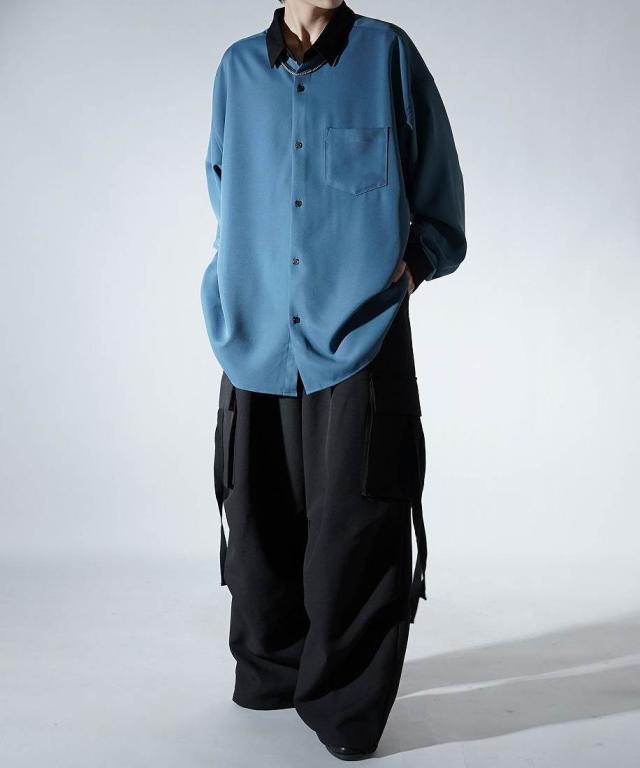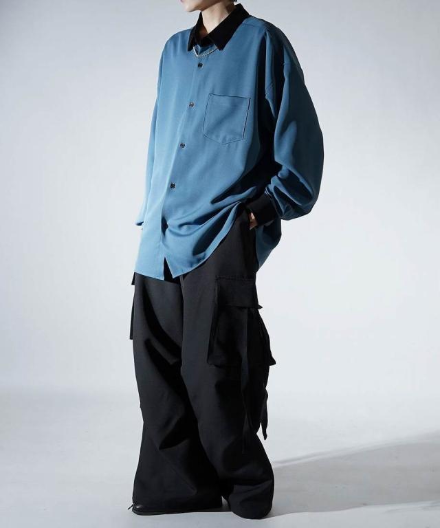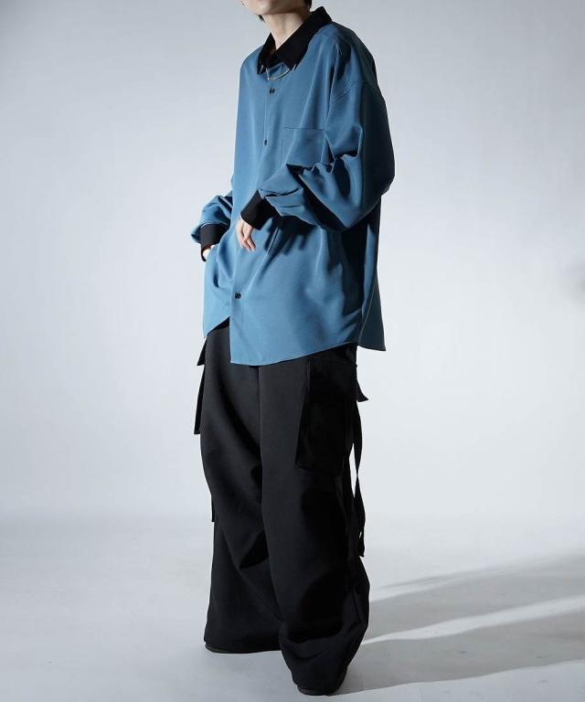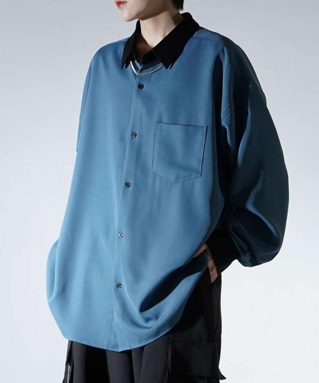 コンファーム(Confirm)/Confirm アシンメトリー 襟配色クレリック ドレープとろみ ビッグシルエット長袖シャツ