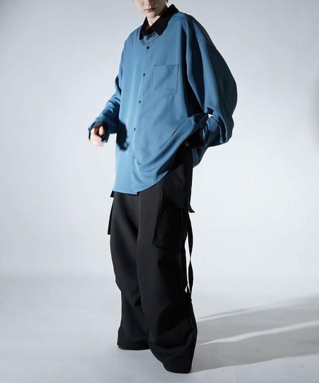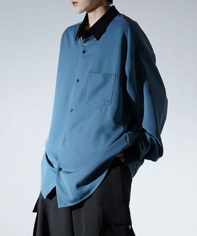 Confirm アシンメトリー 襟配色クレリック ドレープとろみ ビッグシルエット長袖シャツ