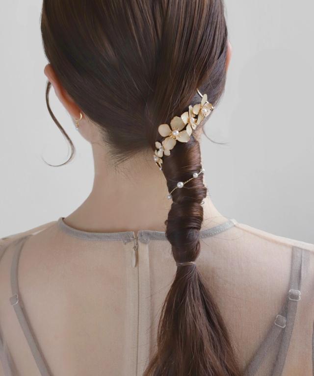 頭に沿わせて留めたり結んだ髪に巻き付けるなど、アレンジやレングスによって様々な使い方を楽しめます。