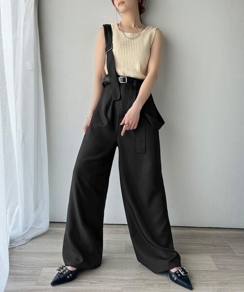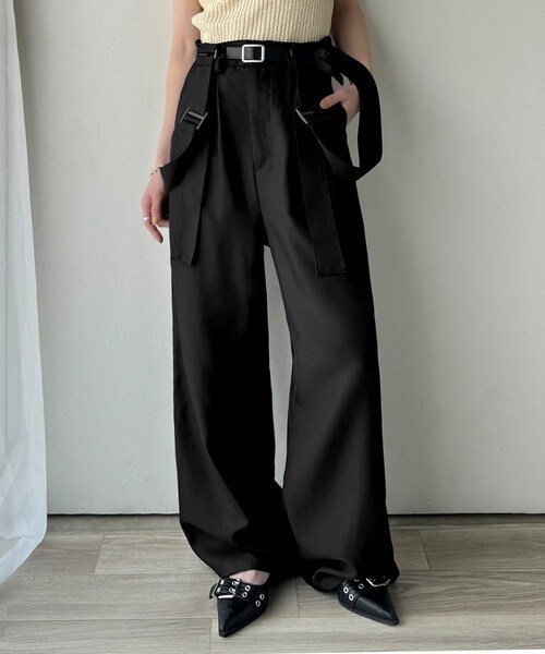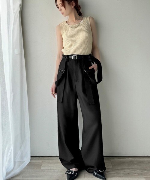 きれいめな落ち感素材と、ウエストマークのベルトデザインが主役。