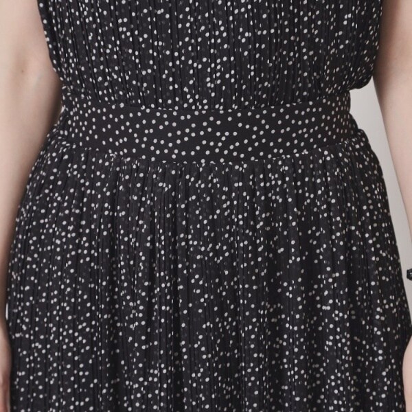 裾消しのプリーツデザインにすることで、裾に向かってエレガントに広がる柔らかな雰囲気に仕上げました。