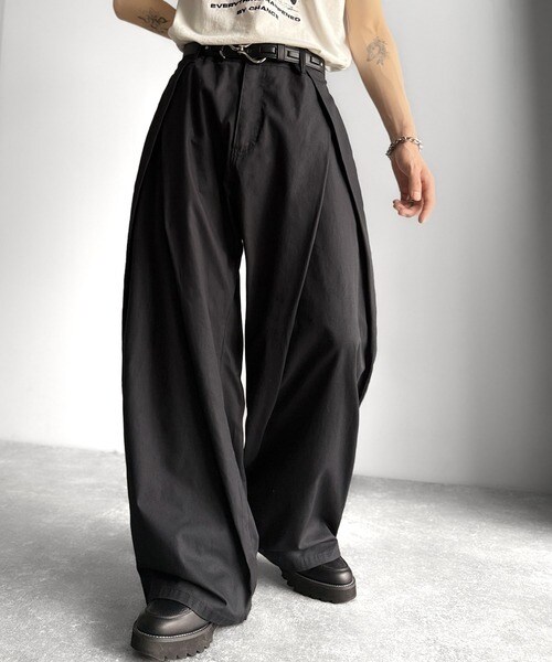 ダブルタックデザインバックポケットワイドスラックス」