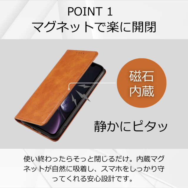 マグネット開閉で使いやすく、横置きスタンドとしても活躍します。