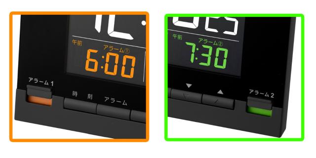 ●2つのアラーム時刻を使い分けできます。