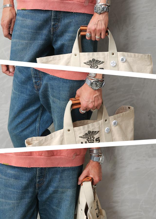 「キャンバストートと一緒にエイジングするハンドル」