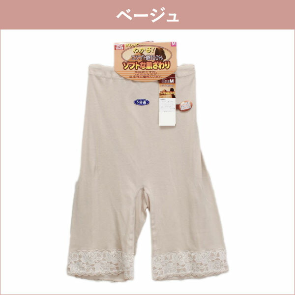 【アウトレット】さわってわかるエジプト綿 広幅レース 5分長 パンティ ロングショーツ LL | レディース 5分丈 ショーツ ハイウエスト 無地